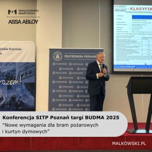 Podczas IV Konferencji Naukowo-Technicznej „Bezpieczeństwo Pożarowe Obiektów Budowlanych”, odbywającej się na targach BUDMA w Poznaniu, nasz ekspert techniczny dr inż. Zenon Małkowski omówił najnowsze zmiany w normach przeciwpożarowych. To niezwykle istotny temat, zwłaszcza w kontekście bezpieczeństwa budynków i spełniania rosnących wymagań technicznych.