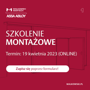 Zapraszamy do udziału w nowej edycji SZKOLENIA MONTAŻOWEGO, które obędzie się 19 KWIETNIA 2023 roku w formie ONLINE.