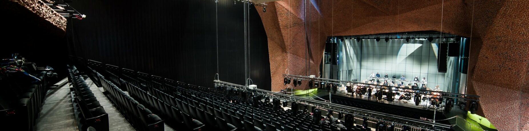 Główna sala koncertowa jest najbardziej charakterystyczną bryłą budynku - posiada widownię, rozmieszczoną na kilku poziomach, w celu uzyskania atrakcyjnych punktów obserwacyjnych. Główna scena, przewidziana dla orkiestry złożonej z muzyków - ma możliwość otwarcia się na zewnętrzny plac zlokalizowany od strony tylnej elewacji i organizacji koncertów plenerowych. Akustyka sali będzie dostosowywana, do mającego w niej miejsce, wydarzenia muzycznego, za pomocą ruchomych sufitów. Duża sala może być połączona z salą kameralną za pomocą przesuwnej ściany.