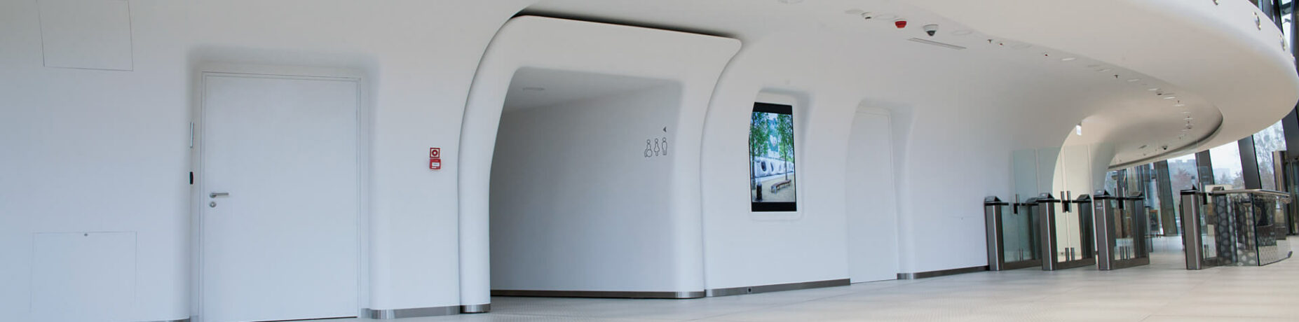 In dem Hochhaus wurde ein speziell für diesen Raum konzipierter Fluchttunnel eingerichtet. Er besteht aus zwei sich überlappenden Segmenten, die im Brandfall aus dem Korridor in den freien Raum des Gebäudes ragen und den Menschen in den oberen Stockwerken des Bürogebäudes eine schnelle Evakuierung ermöglichen. Sobald der Tunnel aktiviert wird, schaltet sich die Evakuierungsbeleuchtung im Inneren des Tunnels ein, während sich die Türen in der Fassade, durch die der Tunnel ins Freie führt, im Falle eines Feueralarms automatisch öffnen.